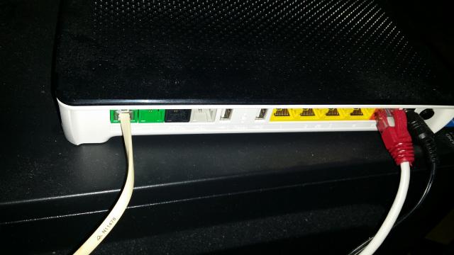 The phone cable is connected to one of the phone ports and the red-headed cable shown here connects back to my network switch/hub For those who have a MikroTik router, the following screenshot, with my identifying information brushed out, shows what your setup screen should look like with regards to connection settings.