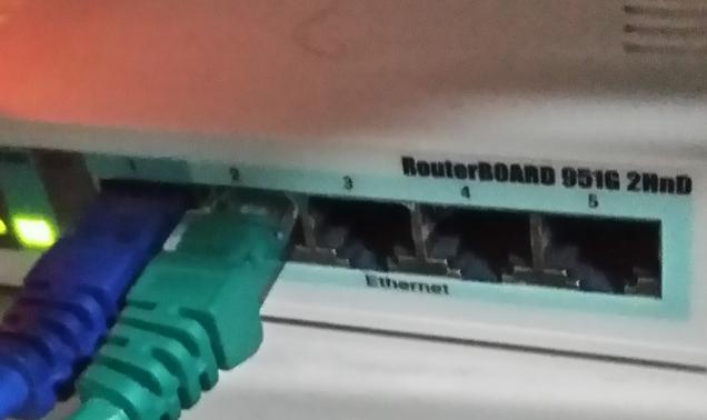 The blue cable connection shown here is to port 1 on my MikroTik and the green cable on port 2 goes to my network switch/hub When I connected my phone line to either of the UNI-V 1 or UNI-V 2 ports on the NBN wall unit I did not get any phone tone on the phone itself. What I did find, however, was if I left the phone line connected to the original Telstra supplied router and connected this router to my network switch/hub, I did get a fully operational phone.