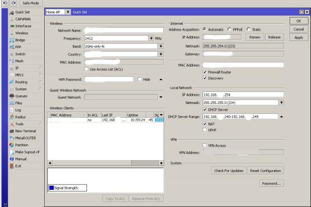 Scenario: Issue: While this worked for the most part, I also wanted to use the EOIP (Ethernet Over IP) tunneling facility on the MikroTik and the supplied routers with the Telstra NBN bundle only offer routers that do TCP and UDP port forwarding - they do not facilitate full protocol forwarding (eg., GRE), and therefore any network protocol other than TCP/UDP were not possible to a router behind the Telstra router. Despite the supplied Telstra equipment specifying that it allows VPN 'pass through' of L2TP, PPtP and IPSec, the MikroTik could never connect using EOIP to external connections nor could those external connections gain access to my MikroTik. Solution: Once I connected the MikroTik directly into the NBN wall unit I had immediate and uninhibited access to the Internet (NB: with the MikroTik you have to use the "Automatic" option for the connection).